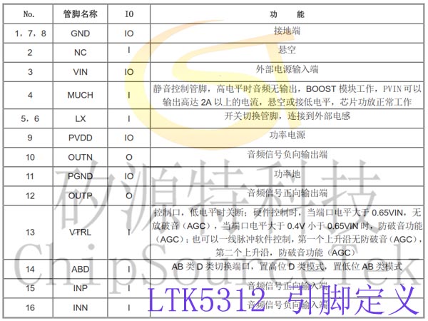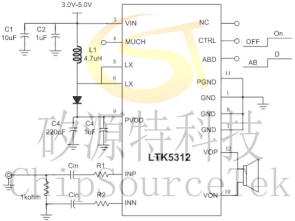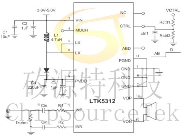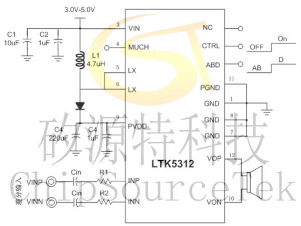 LTK5312内置BOOST同步升压带自动增益控制音频功放