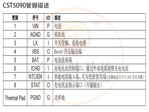 CST5090典型应用电路图:CST5090引脚排列:CST5090管脚描述:CST5090订购信息:料号