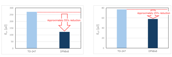 图1 TO-247与DFN8×8封装的导通损耗(Eon)和关断损耗(Eoff)比较