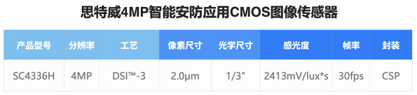 2025年5月22日,中国上海 — 思特威(上海)电子科技股份有限公司(股票简称:思特威,股票代码:688213)近日宣布,全新推出4MP智能安防应用图像传感器——SC4336H。作为思特威基于DSITM-3工艺技术打造的首款产品,SC4336H采用1/3"靶面尺寸设计,搭载了SFCPixel等思特威专利技术,拥有高感度、高色彩还原度、低噪声、低功耗等性能优势,凭借出色稳定的高质感成像,充分满足智能安防应用的性能升级需求。