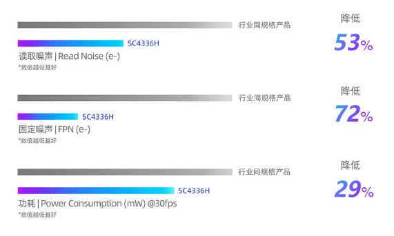 SC4336H搭载思特威专利的SFCPixel 技术与超低噪声外围读取电路技术,噪声抑制性能突出。与行业同规格产品相比,其读取噪声(RN)大幅降低约53%,固定噪声(FPN)降低约72%,可显著减少画面中的噪点,即使在暗光场景下也能为摄像头捕获到更清晰干净、细腻丰富的影像画面,有效提升安防监控的图像捕捉能力。