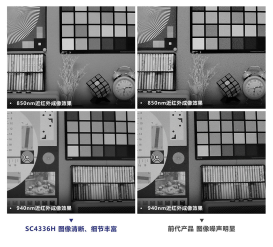 SC4336H基于思特威全新DSITM-3工艺技术打造,通过优化硅片外延以及前道工艺,实现了近红外感度的大幅提升,帮助摄像头在红外灯下获得高质量的暗光成像效果。在850nm波段,SC4336H的峰值量子效率(peak QE)较前代产品显著提升约21%,能够在夜间等低照度场景为摄像头捕捉到细节清晰的画面信息。在940nm波段,SC4336H的峰值量子效率(peak QE)较前代产品提升约15%,可在极暗或无光的环境中输出清晰明亮的优质影像,满足夜晚红外补光监控的使用需求,保障监控画面的清晰度与输出画质的稳定性。
