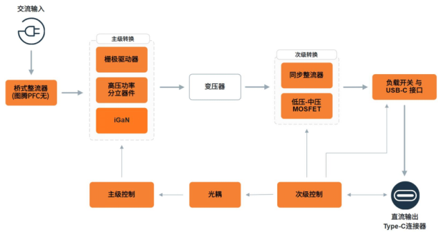 本设计采用安森美电源管理控制器方案,包含:TP PFC控制器、高频准谐振反激控制器、半桥栅极驱动器及同步整流控制器,并通过集成GaN FET的栅极驱动器实现功率开关,专为240W USB-C PD3.1适配器解决方案开发。