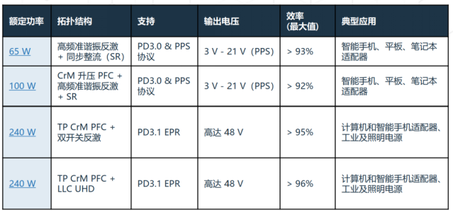 · 采用图腾柱CrM PFC + 双开关准谐振反激拓扑