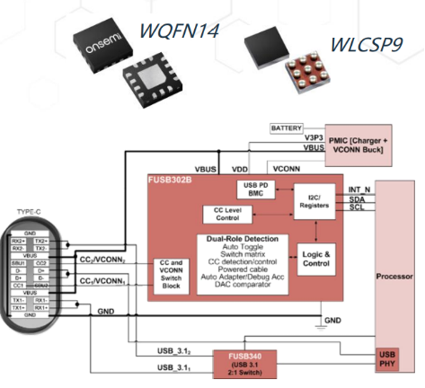 o FUSB302B - DRP,可在电池完全耗尽时实现充电功能
