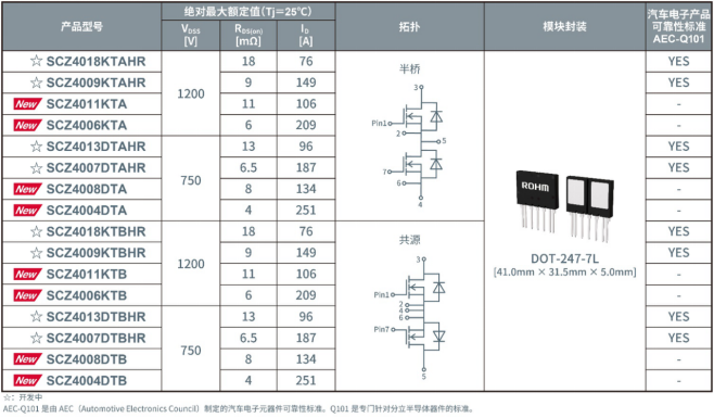 产品阵容包括750V耐压的4款机型(SCZ40xxDTx)和1200V耐压的4款机型(SCZ40xxKTx)。新产品已于2025年9月开始暂以月产1万个的规模投入量产(样品价格:20,000日元/个,不含税)。另外,符合汽车电子产品可靠性标准AEC-Q101的产品,也计划于2025年10月开始提供样品。