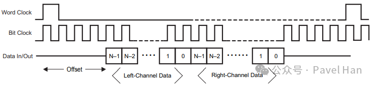 • BCLK(Bit Clock):串行位时钟线,用于控制数据的采样速率。音频数据在BCLK的上升沿或下降沿被采样。