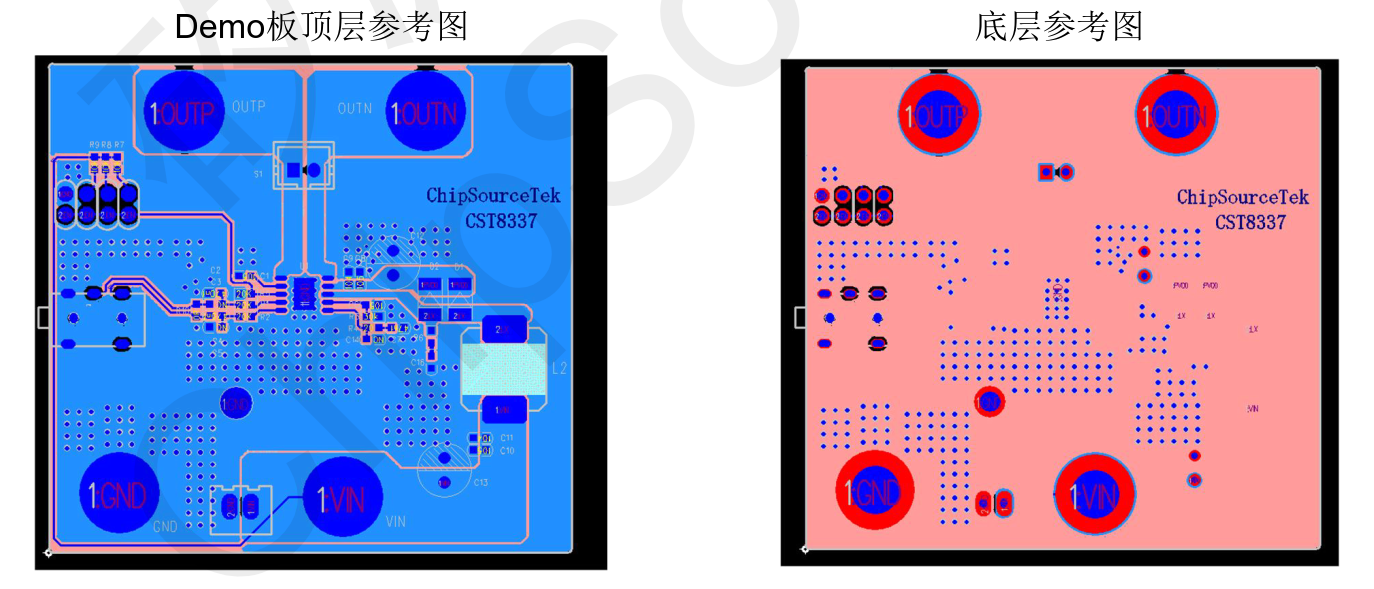CST8337采用ESSOP-10小体积封装,两颗CST8337占用较小PCB面积。