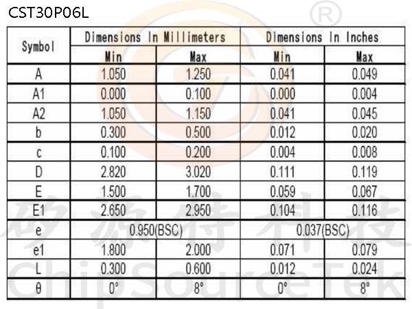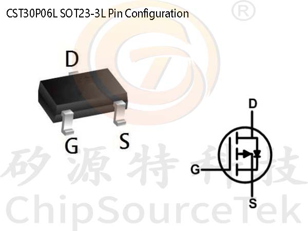 CST30P06L是BVDSS=-30V,RDSON=24mΩ,ID=-6.0A的P沟道快速切换Mosfet。提供SOT23-3L封装。