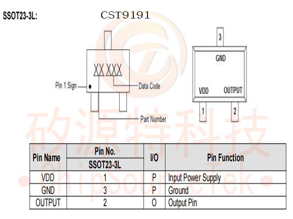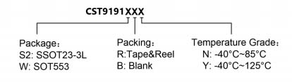 CST9191S2RN | +42 | +25 | SSOT23-3L | 7-in reel 3000pcs/reel | -40~85℃ | Green |