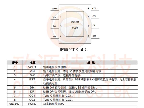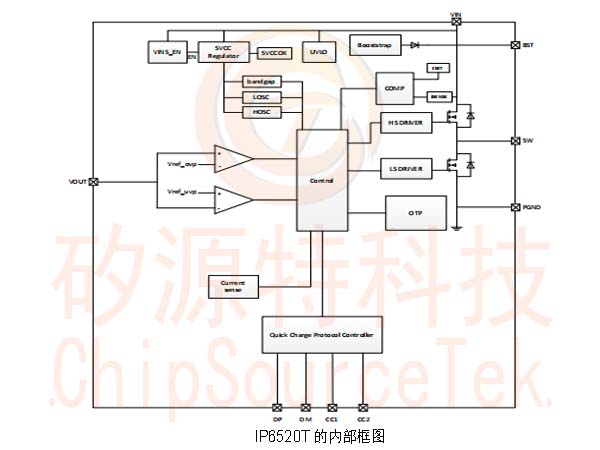 IP6520T是一款集成同步开关的降压转换器、支持多种输出快充协议、支持 Type-C输出和USB PD2.0/PD3.0(PPS)协议,为车载充电器、快充适配器、智能排插提供完整的解决方案。