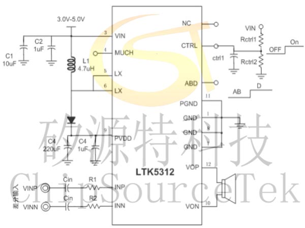 LTK5312内置BOOST同步升压带自动增益控制音频功放
